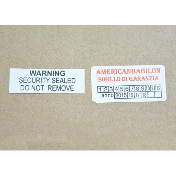 1. Self adhesive destructible label used seal customer box or seal the products directely . before removed the label. we can printing all customer infomation or logo on the label . as well as serial numbers . barcode . QR code etc .